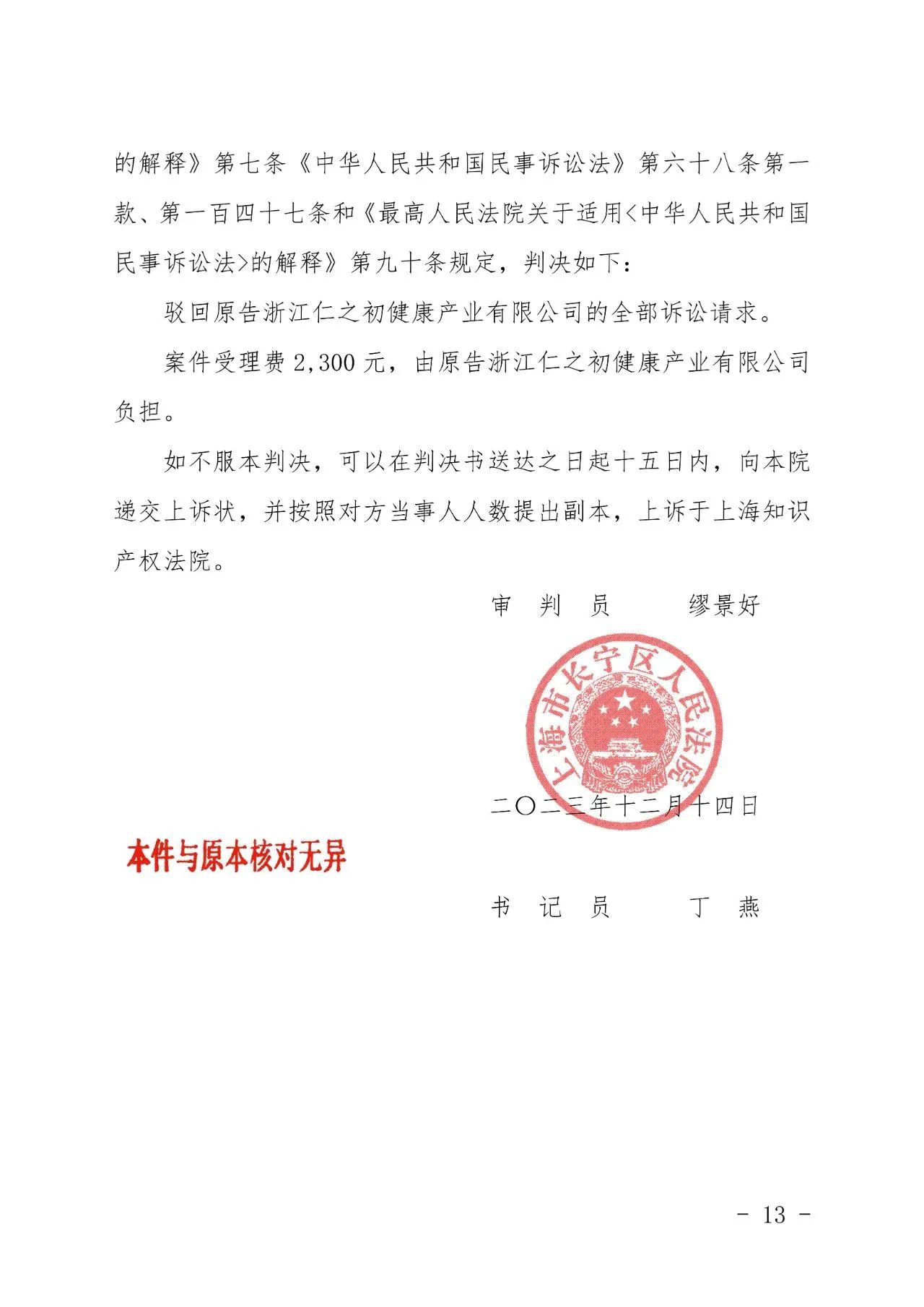 兰州辉知胜诉佳讯 | “仁之初健康”著作权及不正当竞争纠纷案,法院:驳回全部诉讼请求!